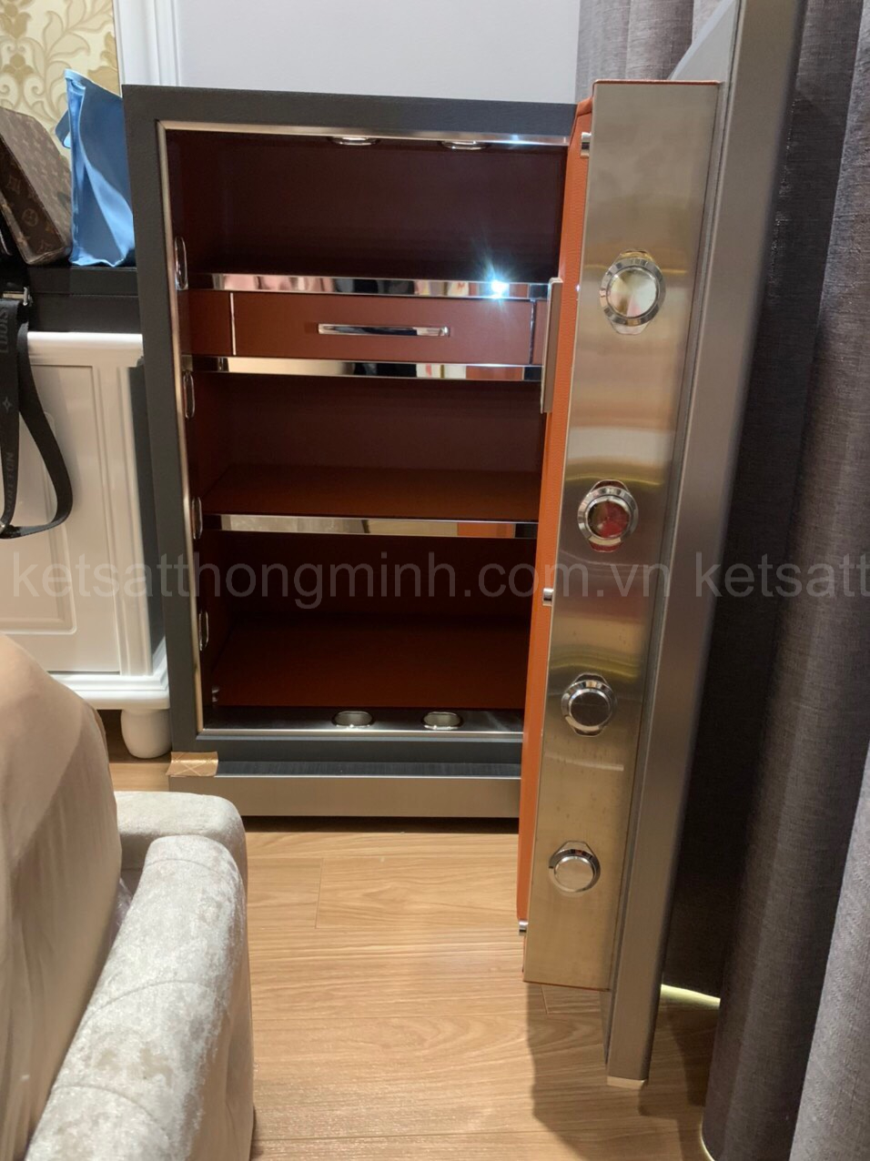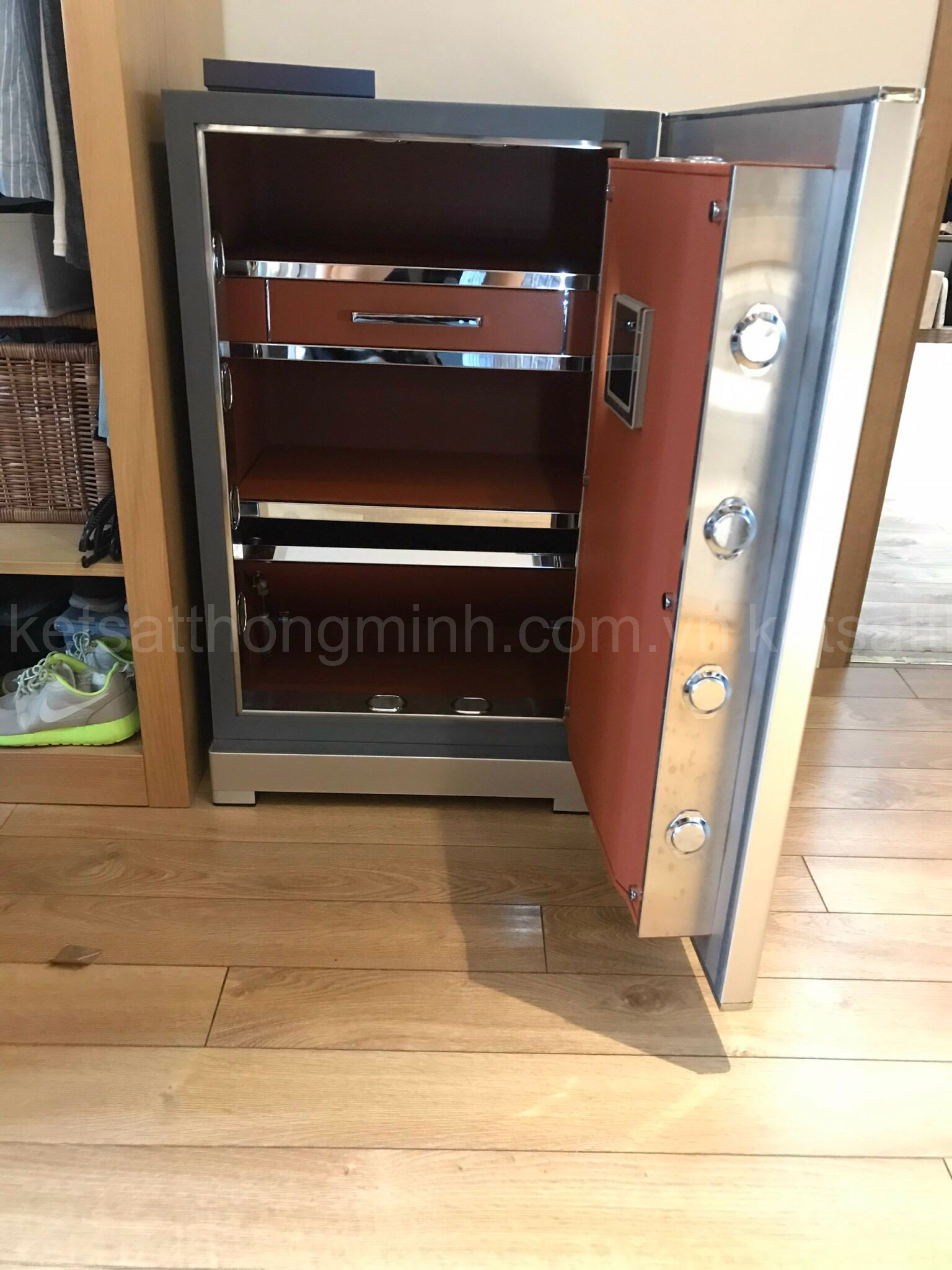Bên trong mỗi két sắt đều được trang bị ít nhất 2 tầng để đồ. Cùng với đó là một ngăn chứa bí mật phía dưới, giúp người dùng luôn có một không gian rộng rãi và thoải mái sử dụng.