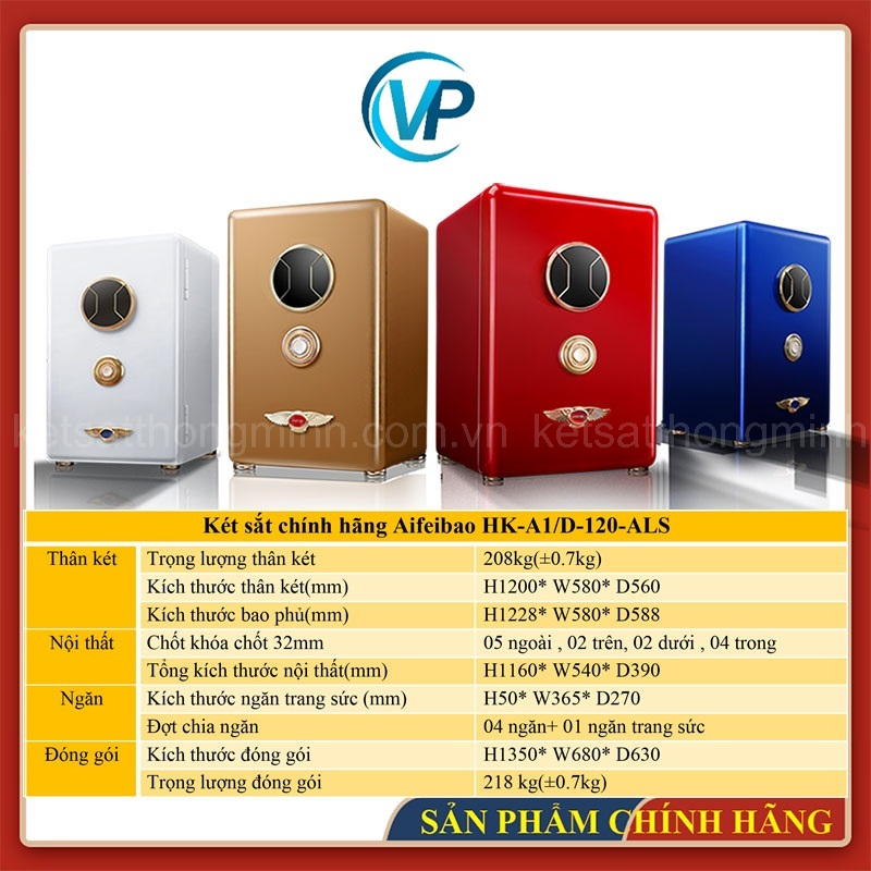 Két sắt thông minh Aifeibao HK-A1/D-120-ALS là dòng Két sắt vân tay chính hãng mang thương hiệu AIFEIBAO. Một trong 2 thương hiệu nổi tiếng nhất tại Trung Quốc. Thương hiệu AIFEIBAO đã có mặt trên nhiều quốc gia trên thế giới và là một thương hiệu đạt chứng nhận 3C(CCC) tại Trung Quốc.