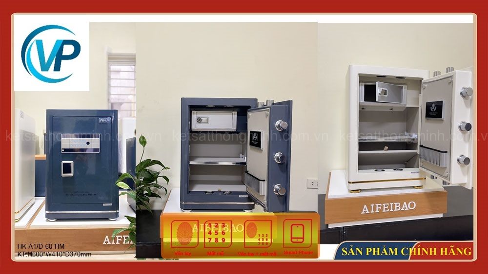 Két sắt thông minh Aifeibao HK-A1/D-60HM là một mẫu két sắt vân tay có kích thước phù hợp với hộ gia đình dùng nhiều nhất. Đường nét gia công tinh tế, nội thất sang trọng, màu sơn rất đặc biệt và đẹp. Hơn nữa tính năng mở 5IN1 bao gồm: vân tay, mật mã, vân tay + mật mã, App qua Smart Phone, chìa cơ khẩn cấp. Ngoài ra còn có tính năng thông báo lịch sử mở két. Cảnh báo trên Smart Phone mọi lúc mọi nơi kể cả khi bạn đi công tác nước ngoài.