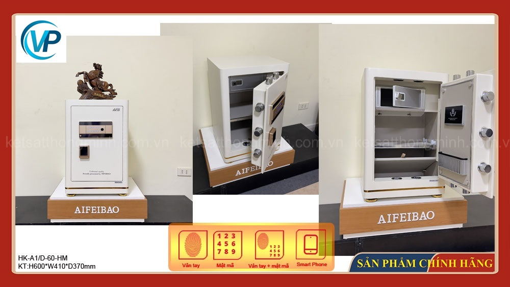 Két sắt thông minh Aifeibao HK-A1/D-60HM là một mẫu két sắt vân tay có kích thước phù hợp với hộ gia đình dùng nhiều nhất. Đường nét gia công tinh tế, nội thất sang trọng, màu sơn rất đặc biệt và đẹp. Hơn nữa tính năng mở 5IN1 bao gồm: vân tay, mật mã, vân tay + mật mã, App qua Smart Phone, chìa cơ khẩn cấp. Ngoài ra còn có tính năng thông báo lịch sử mở két. Cảnh báo trên Smart Phone mọi lúc mọi nơi kể cả khi bạn đi công tác nước ngoài.