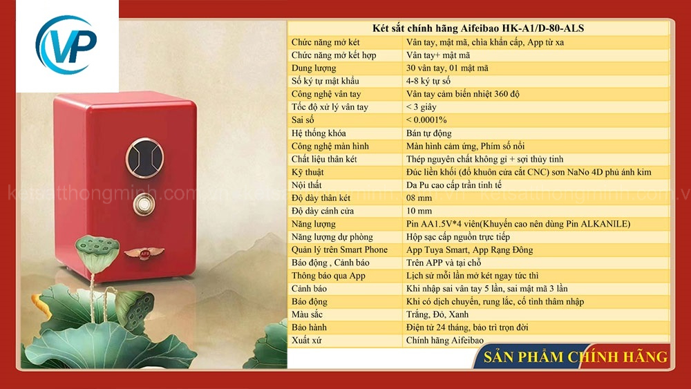 Thông số Két sắt thông minh Aifeibao HK-A1/D-80-ALS