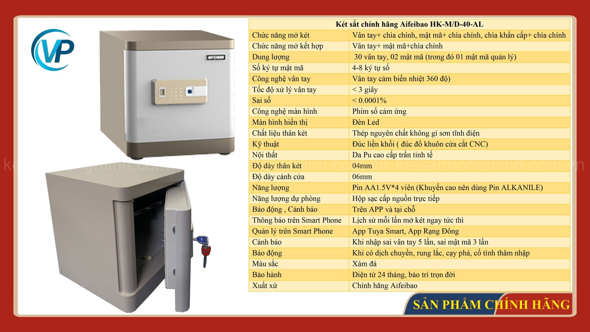 Thông số Két sắt thông minh Aifeibao HK-M/D-40-AL